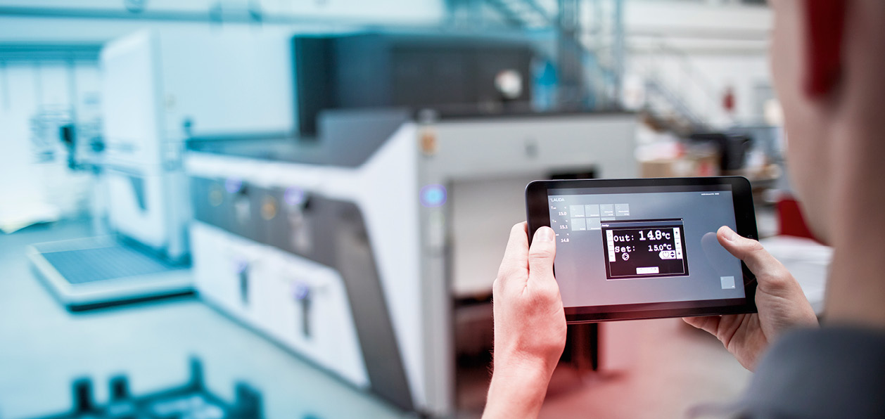 In Digitaldruckmaschinen werden Umlaufkühler für die Kühlung der Farbwerke und für die Abfuhr der entstehenden Prozesswärme in der Maschine benötigt.