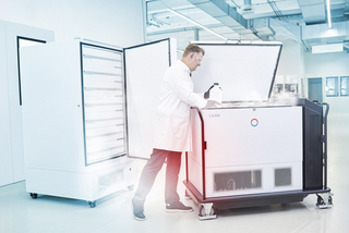 Entdecken Sie zudem die Weltneuheit LAUDA Mobifreeze – die erste mobile, akkubetriebene Ultratiefkühltruhe. Mit 270 L Volumen und vier Stunden netzunabhängiger, aktiver Kühlung zwischen -86 und -50 °C bietet sie sichere Tiefkühllogistik für wertvolle, unwiederbringliche oder empfindliche Proben und Pharmaka. Machen Sie sich vor Ort selbst ein Bild dieser einfachen Plug-and-Play-Lösung, die im Gegensatz zu anderen Optionen wie Trockeneis oder PCM (Phase Change Materials) keinerlei aufwändige Planungen, Sicherheitskonzepte oder Beschaffungen erfordert.