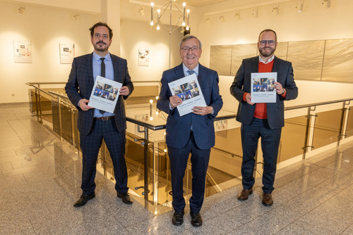 Stolz auf das umfangreiche Werk: Dr. Gunther Wobser, Geschäftsführender Gesellschafter von LAUDA und Veranstalter der LAUDA FabrikGalerie, gemeinsam mit seinem Vater, Dr. Gerhard Wobser, der die LAUDA FabrikGalerie vor 25 Jahren in Leben gerufen hat und seinem Bruder Jochen Wobser, der als Autor maßgeblich an der Entstehung des Buches beteiligt war. (v. r. n. l.)
