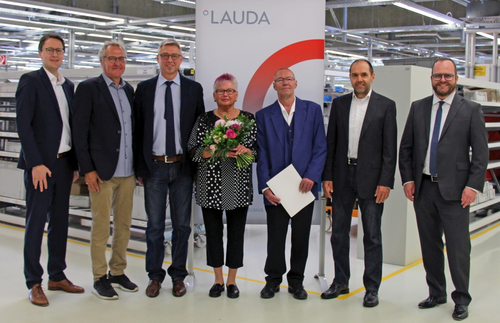 Ähnlich hoch anerkennend äußerten sich Bürgermeister Thomas Maertens, der Leiter Logistik Daniel Härtel sowie der Betriebsratsvorsitzende Elmar Mohr. Zudem zeichnete der Bürgermeister den Jubilar mit einer von Ministerpräsident Winfried Kretschmann signierten Ehrenurkunde des Landes Baden-Württemberg aus. »Die Zeit ist sehr schnell vergangen – wohl auch, weil mir die Arbeit viel Freude bereitet hat und ich viel Glück gehabt habe«, gab Fischer in seinen abschließenden Dankesworten preis. »Ich war und bin außerdem begeistert, wie sich LAUDA unter den jeweiligen Geschäftsführungen entwickelt hat«.