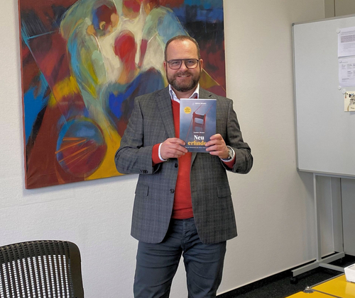 Der Geschäftsführende Gesellschafter von LAUDA, Dr. Gunther Wobser, mit seinem Buch »Neu erfinden: Was der Mittelstand vom Silicon Valley lernen kann«.