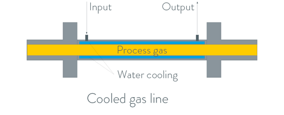 Since most processes take place in a vacuum or gaseous environment, the temperature in these areas must be controlled properly. For example, this can be achieved by adding watercooled outer jackets to stainless steel pipes or housings.