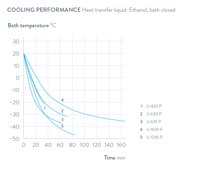 Universa cooling thermostats are available in three performance classes. The economical entry-level variant Universa ECO offers 300 W cooling capacity with a working temperature range of -30 to 100 °C (available from Q4/2025). Universa PRO for professional temperature control covers a working temperature range of -45 to 200 °C with a cooling capacity of 0.2 to 0.8 kW. As the high-end solution and most powerful variant, Universa MAX offers up to 1.6 kW cooling capacity with a working temperature range of -90 to 300 °C. For the control heads, bath bases with a filling volume of 4 to 40 liters are available.