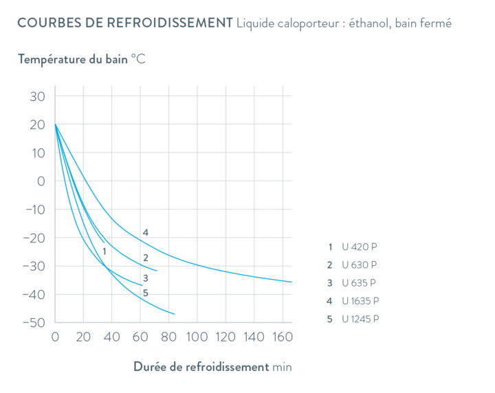 Les thermostats frigorifiques Universa existent en trois classes de puissance. La variante économique d'entrée de gamme Universa ECO offre une puissance frigorifique de 300 W pour une plage de température de travail de -30 à 100 °C (disponible à partir du 4e trimestre 2025). Universa PRO pour la thermostatisation professionnelle couvre une plage de température de travail de -45 à 200 °C avec une puissance frigorifique de 0,2 à 0,8 kW. Universa MAX est la solution haut de gamme et la variante la plus puissante avec une puissance frigorifique allant jusqu'à 1,6 kW pour une plage de température de travail de -90 à 300 °C. Pour les têtes de contrôle, des parties inférieures de bain d'un volume de remplissage de 4 à 40 L sont disponibles.