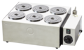 LAUDA Hydro vaporization baths operate in a temperature range from 25 to 100 °C. The opening diameter of the water bath can be variably changed in approx. 20 mm steps by means of the multipart ring set. The models H 11 V, H 19 V were specially designed for protected working use in fume cupboards. The housings are made of stainless steel to allow evaporation work with chemically aggressive media.
