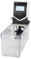 LAUDA ECO heating thermostats with transparent bath are available with a bath volume of 6 to 20 L. With the practical flow division on the control head, an individual division of the flow between internal and external circulation is possible even during operation.