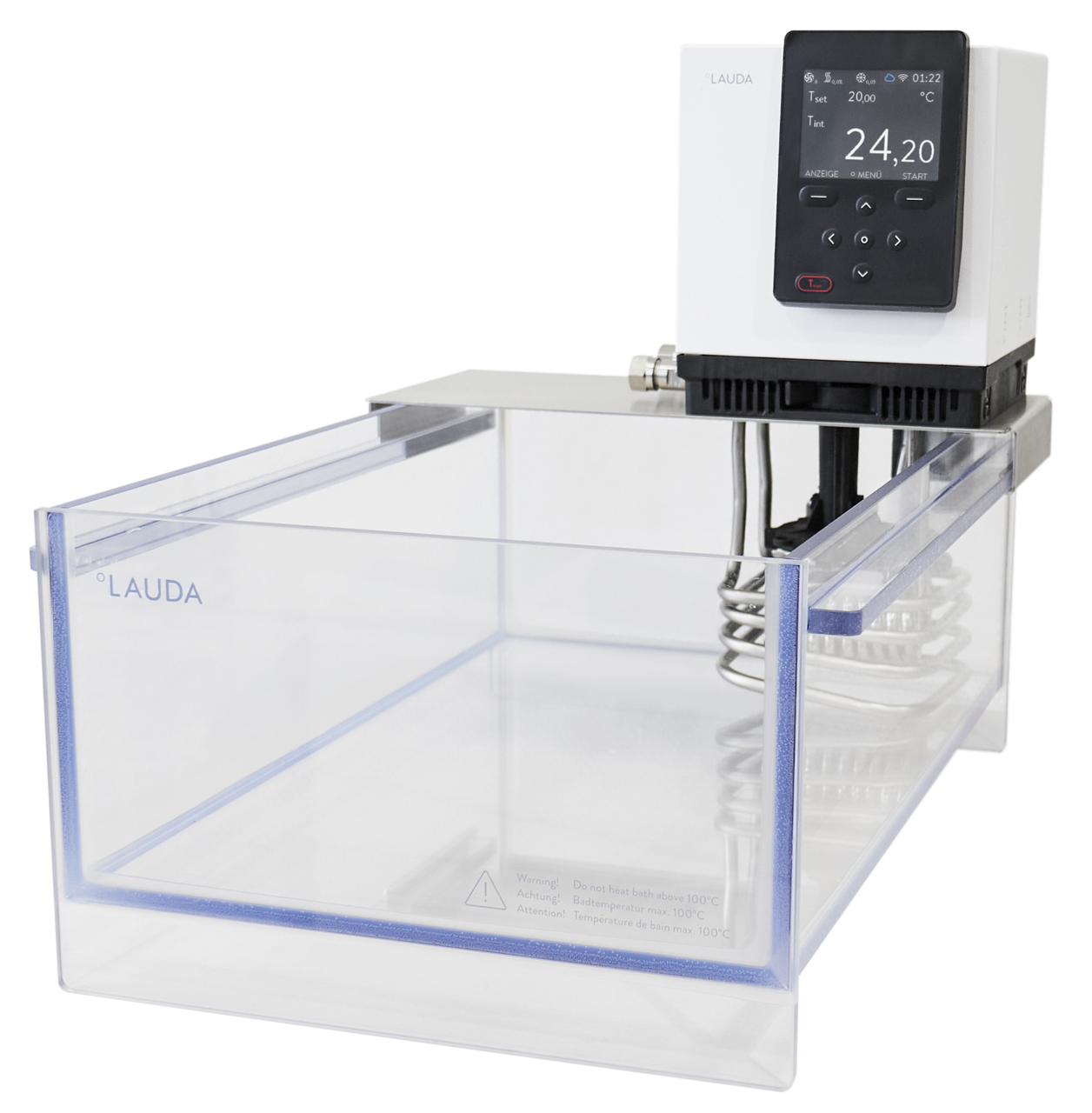 Comprehensive safety concept: - Reliable low-level protection with float technology, - Adjustable overtemperature protection with acoustic alarm, - Smart temperature control media management with automatic limit value adjustment. For reliable operation and improved safety of your valuable samples.